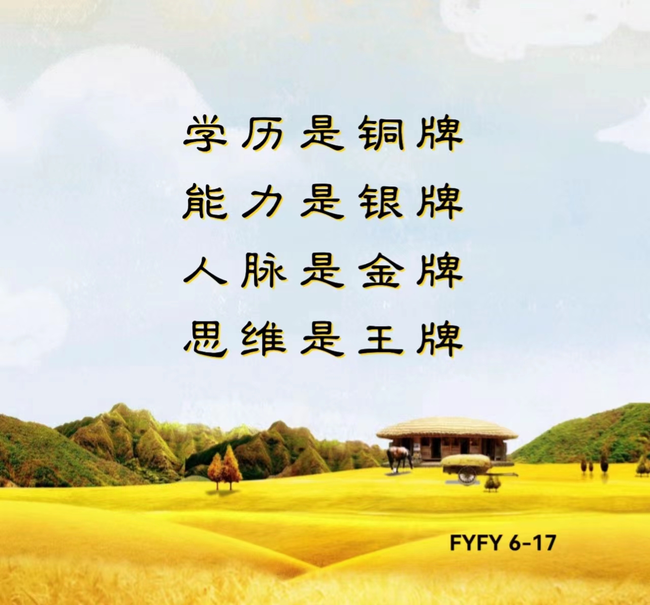 学历是铜牌,能力是银牌,人脉是金牌,思维是王牌。