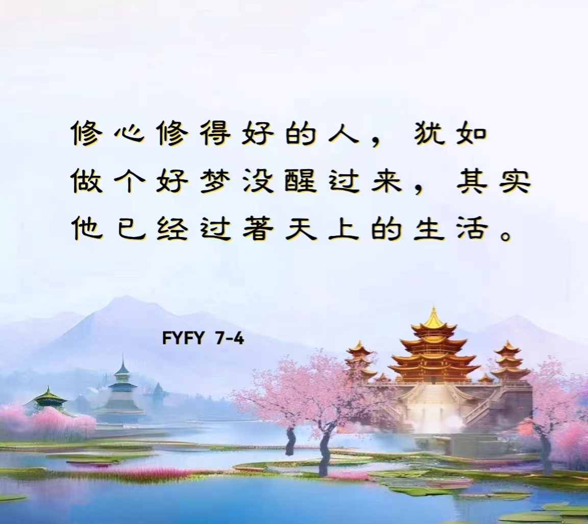 修心修得好的人,犹如做个好梦没醒过来,其实他已经过着天上的生活。