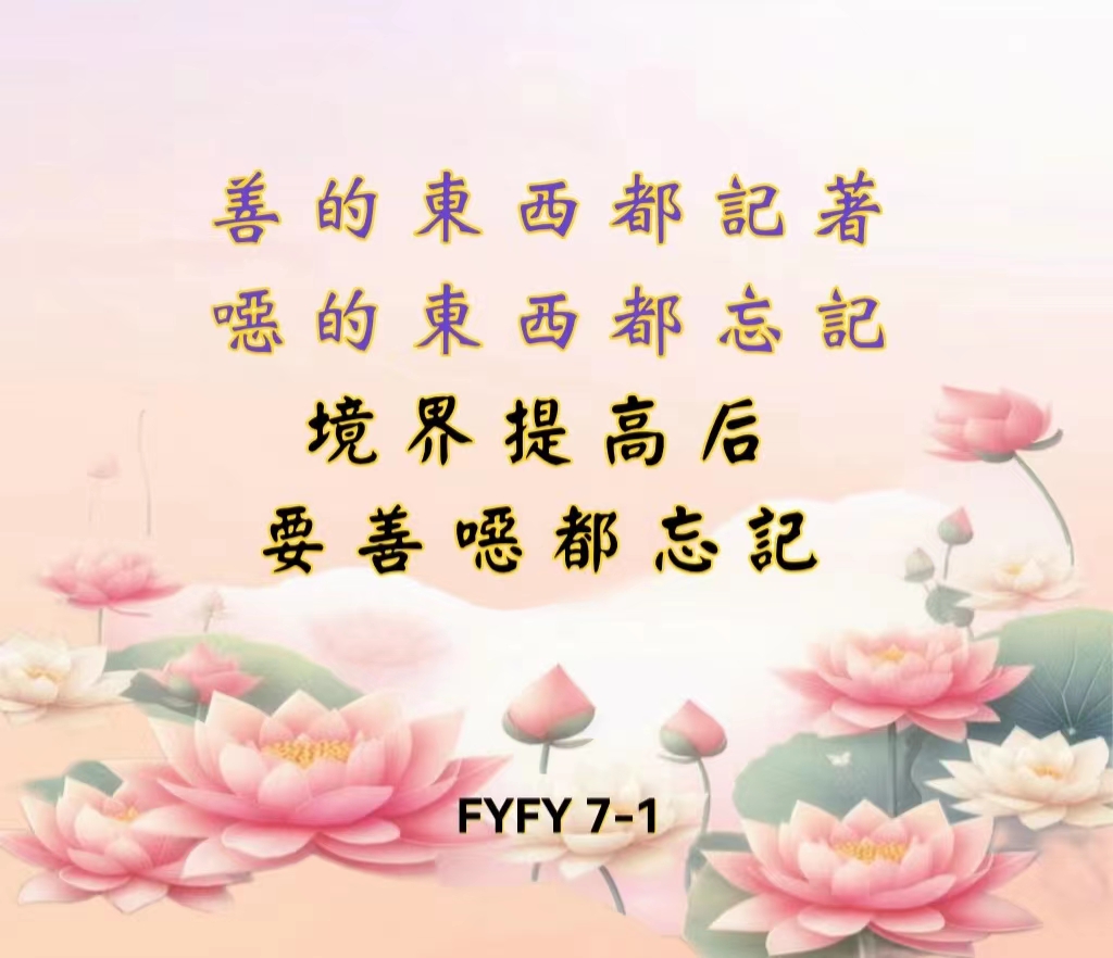 善的东西都记着,恶的东西都忘记;境界提高后,要善恶都忘记。