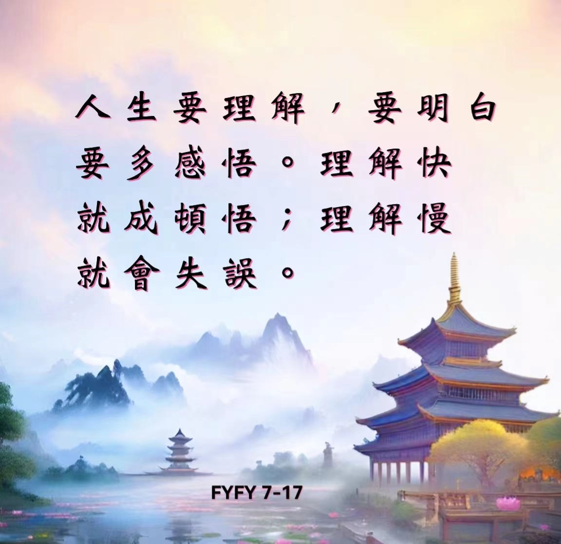 人生要理解,要明白,要多感悟。理解快,就成顿悟;理解慢,就会失误。