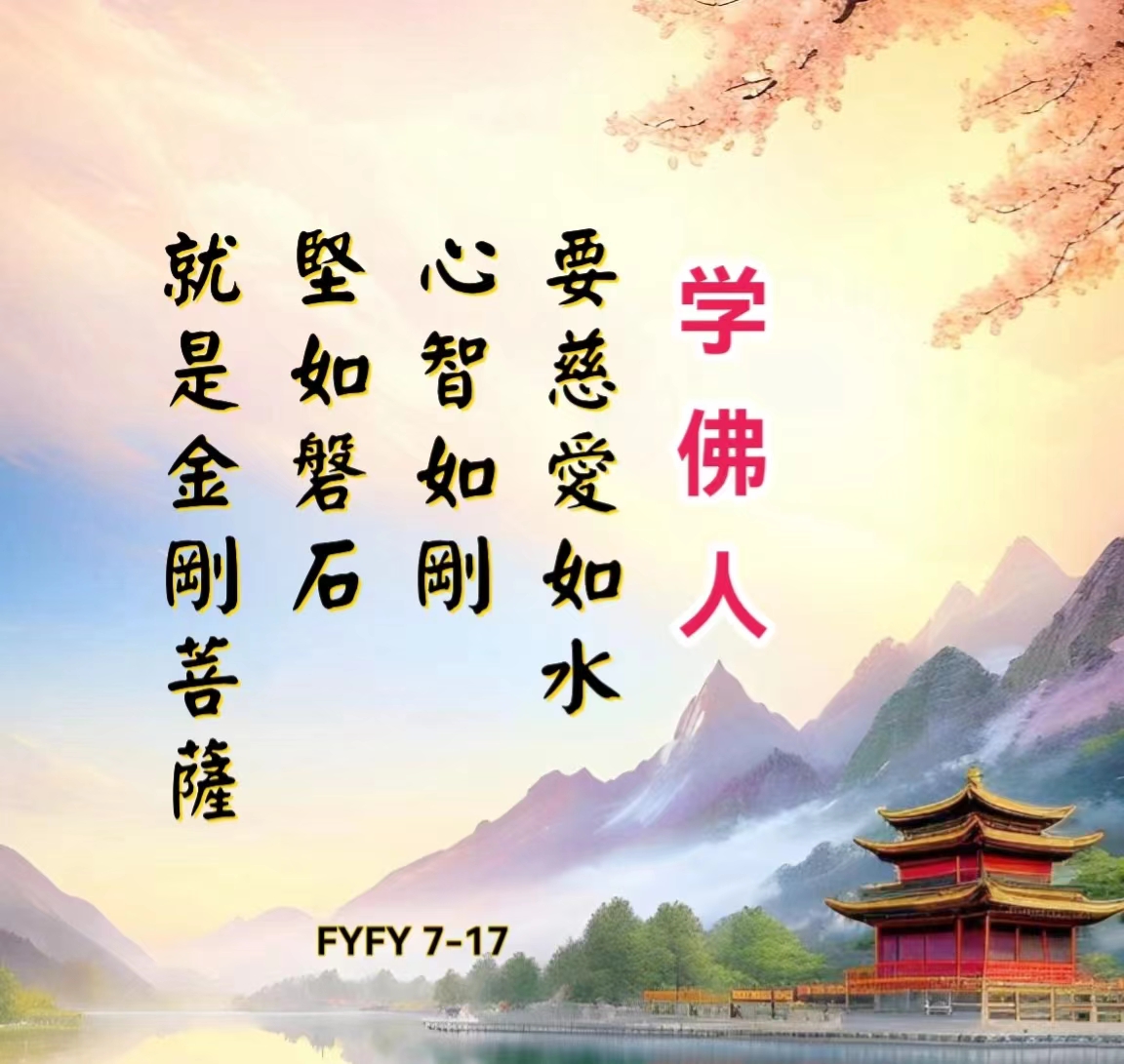 学佛人要慈爱如水,心智如刚,坚如磐石,就是金刚菩萨。