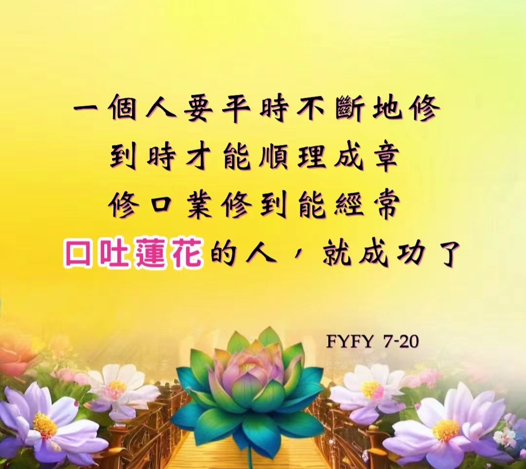 一个人要平时不断地修,到时才能顺理成章。修口业修到能经常口吐莲花的人,就成功了。