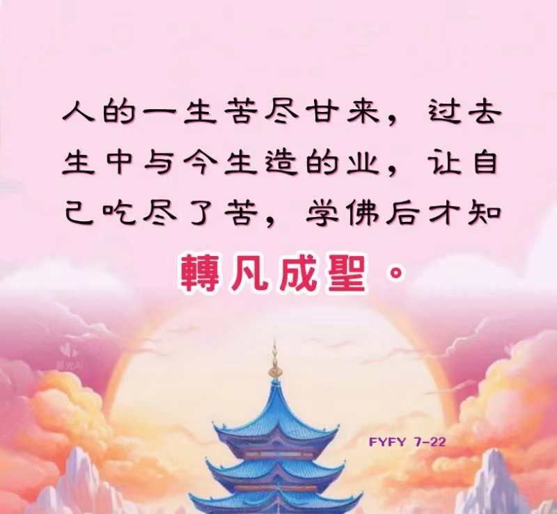 人的一生苦尽甘来,过去生中与今生造的业,让自己吃尽了苦,学佛后才知转凡成圣。