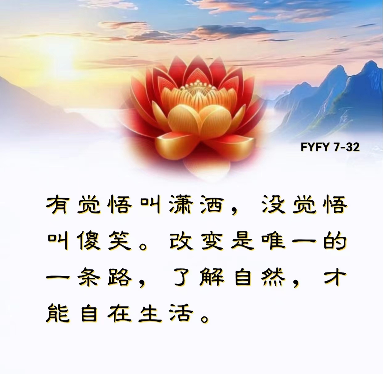 有觉悟叫潇洒,没觉悟叫傻笑。改变是唯一的一条路,了解自然,才能自在生活。