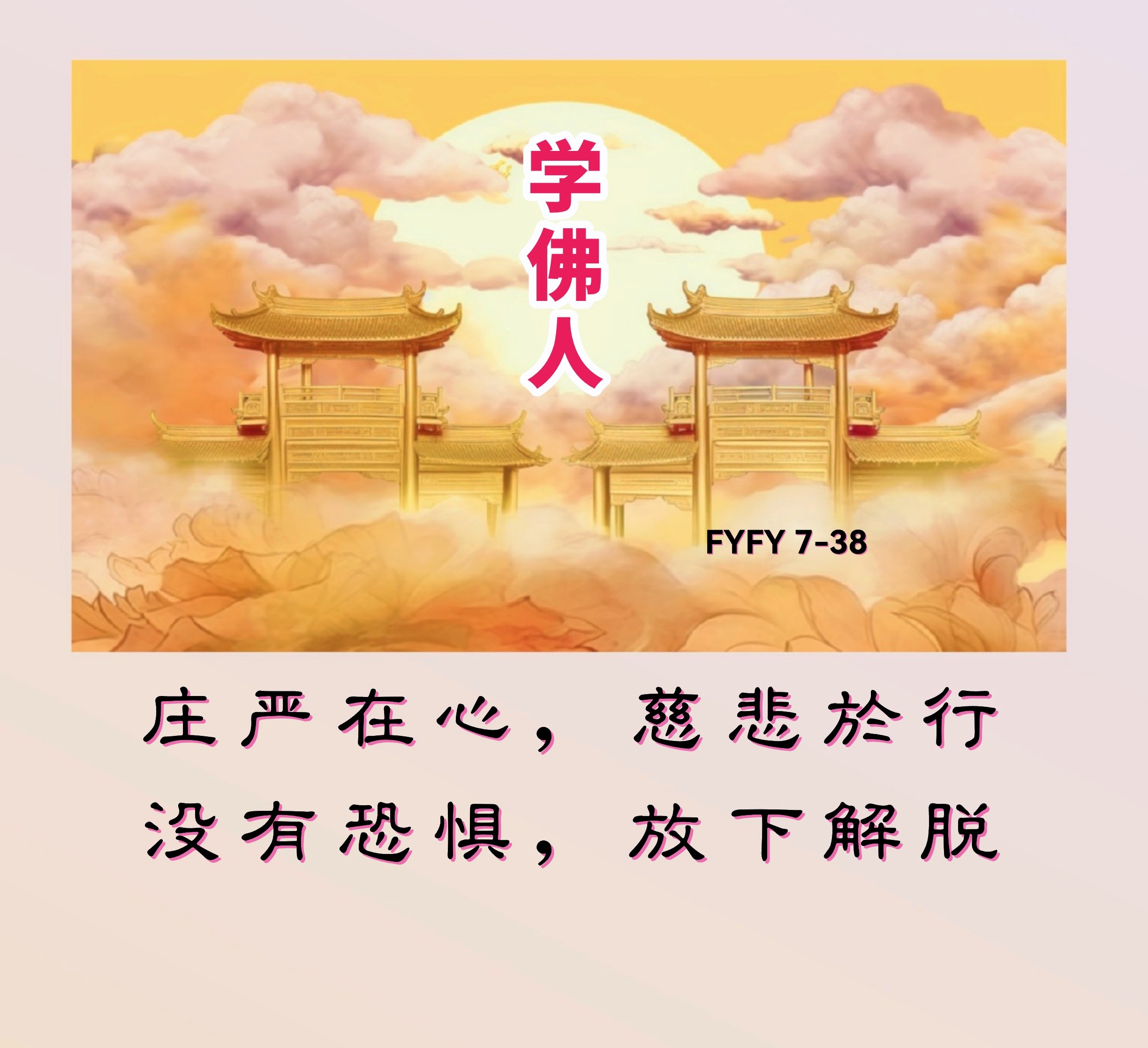 学佛人庄严在心,慈悲于行,没有恐惧,放下解脱。