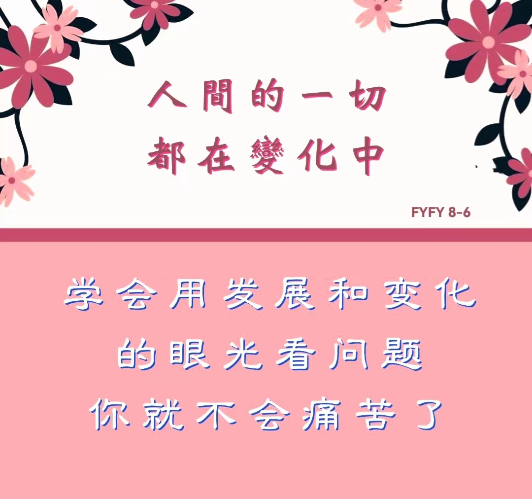 人间的一切,都在变化中。学会用发展和变化的眼光看问题,你就不会痛苦了。