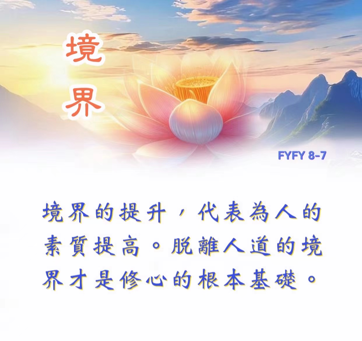 境界的提升,代表为人的素质提高。脱离人道的境界才是修心的根本基础。