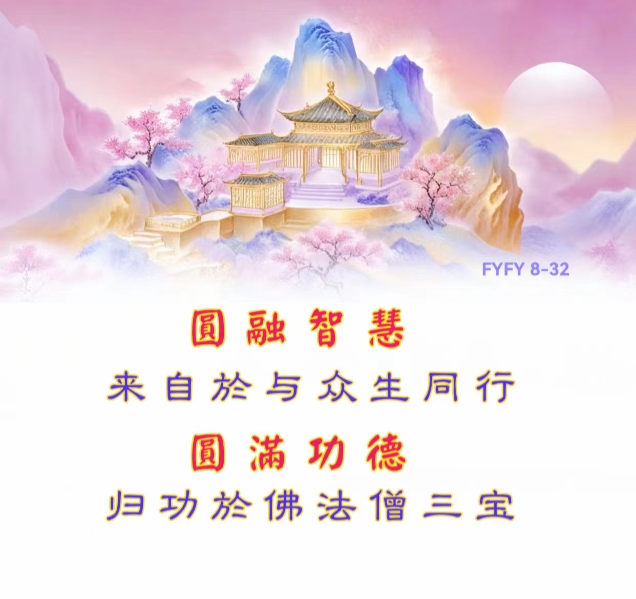 圆融智慧来自于与众生同行,圆满功德归功于佛法僧三宝。