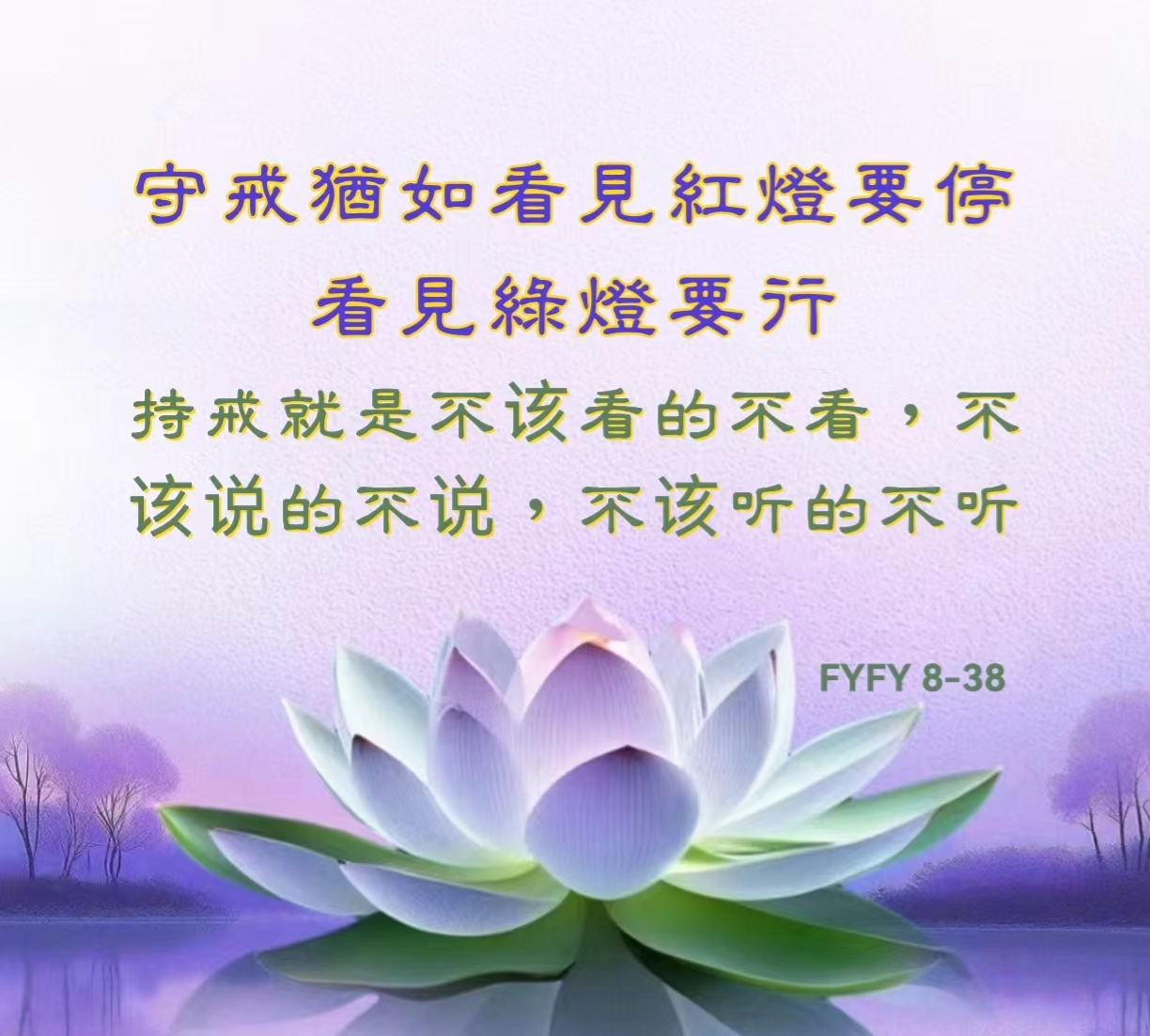 守戒犹如看见红灯要停,看见绿灯要行;持戒就是不该看的不看,不该说的不说,不该听的不听。