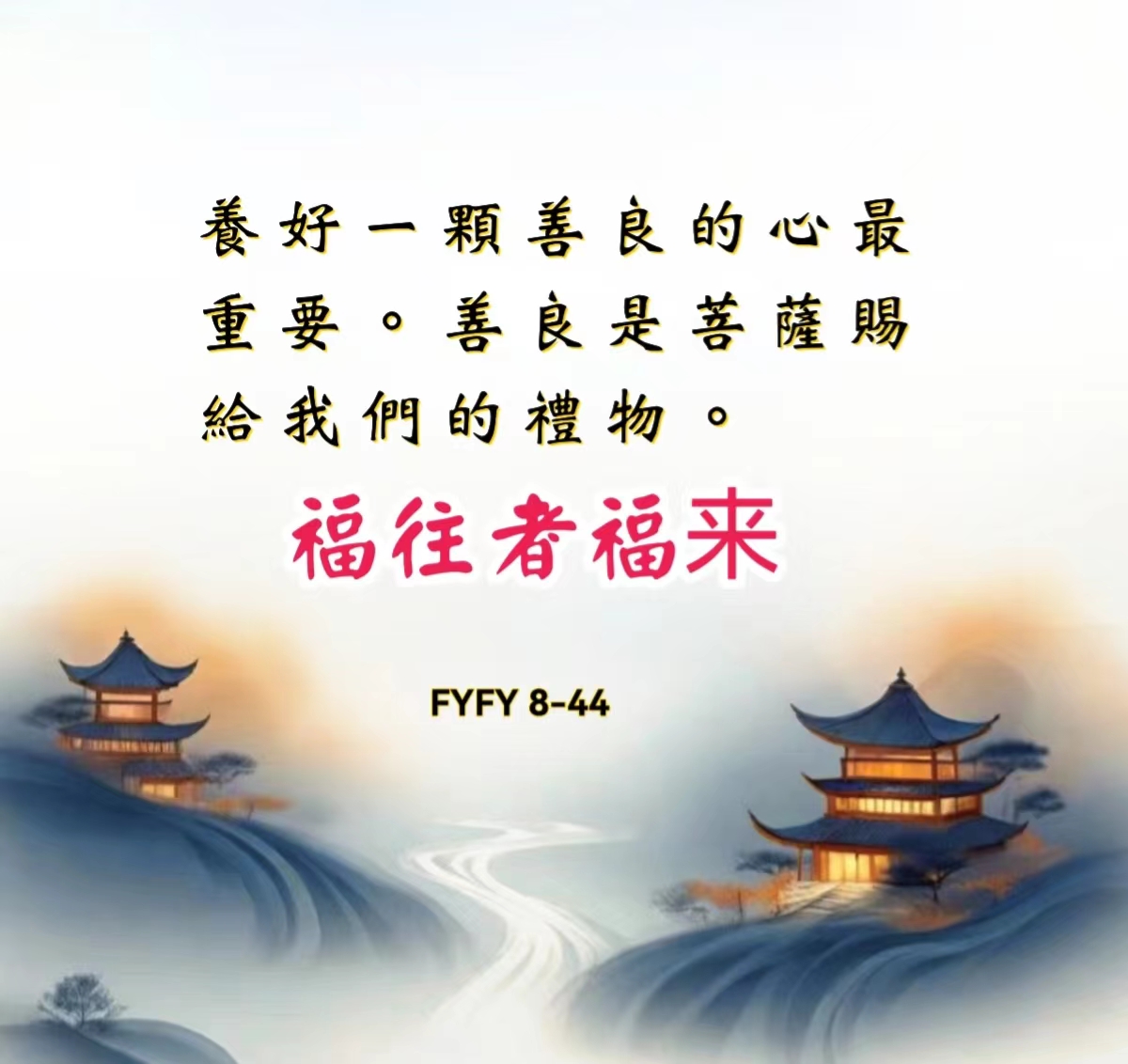 养好一颗善良的心最重要。善良是菩萨赐给我们的礼物。福往者福来。