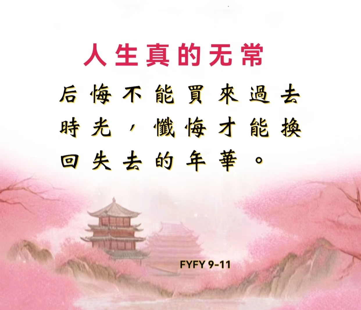 人生真的无常,后悔不能买来过去时光,忏悔才能换回失去的年华。