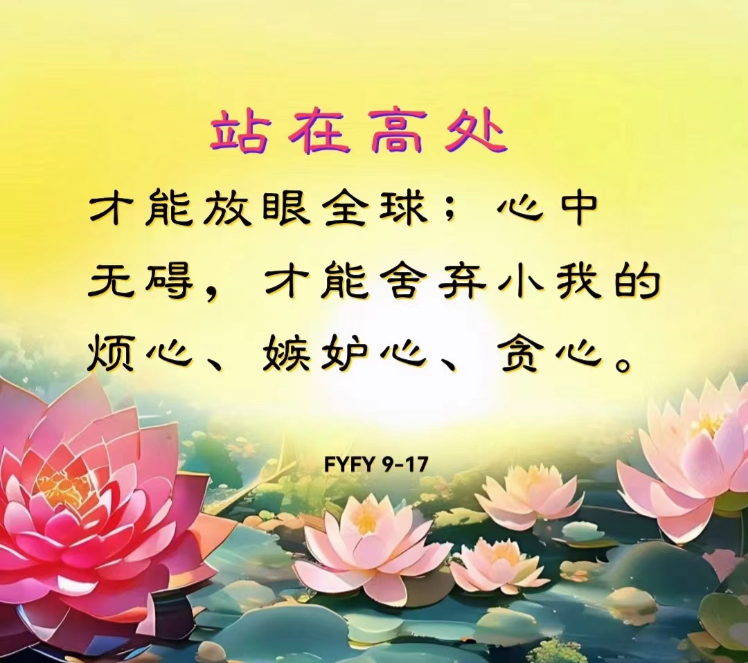 站在高处,才能放眼全球;心中无碍,才能舍弃小我的烦心、嫉妒心、贪心;