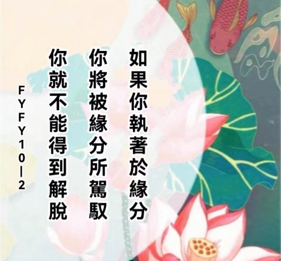如果你执著于缘分,你将被缘分所驾驭,你就不能得到解脱。