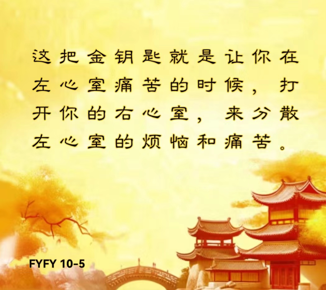 这把金钥匙就是让你在左心室痛苦的时候,打开你的右心室,来分散左心室的烦恼和痛苦。