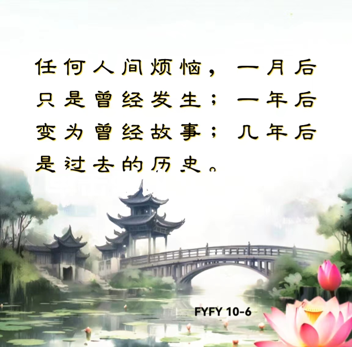 任何人间烦恼,一月后只是曾经发生;一年后变为曾经故事;几年后是过去的历史。