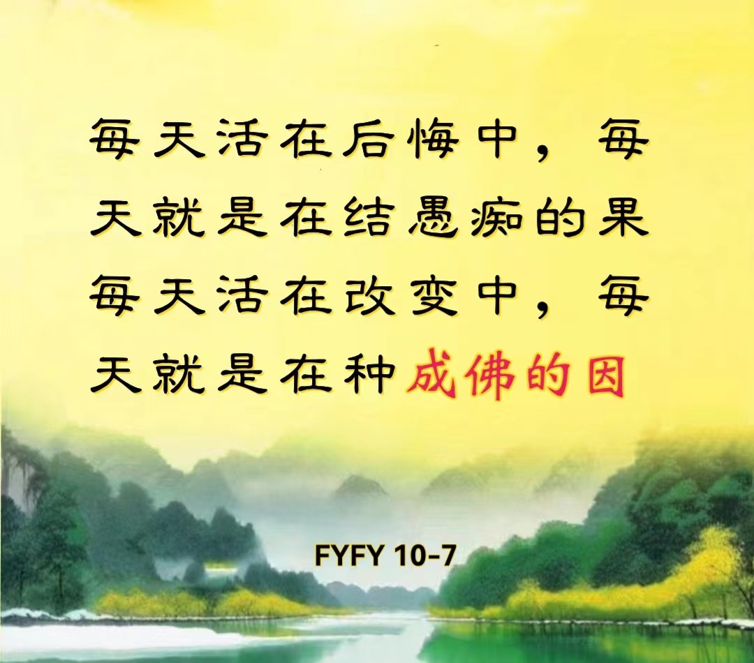 每天活在后悔中,每天就是在结愚痴的果;每天活在改变中,每天就是在种成佛的因。