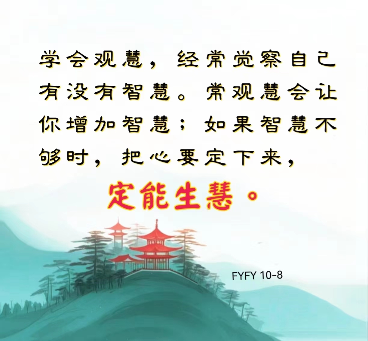 学会观慧,经常觉察自己有没有智慧。常观慧会让你增加智慧;如果智慧不够时,把心要定下来,“定能生慧”。