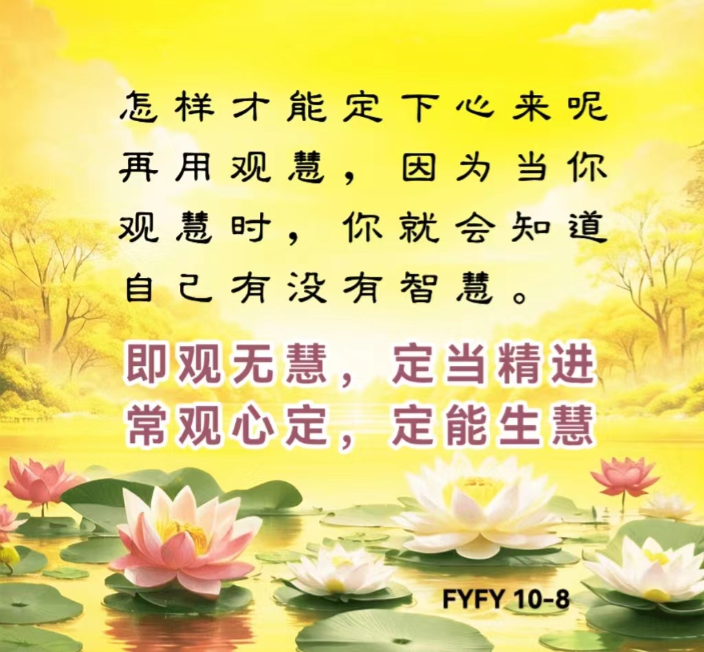 怎样才能定下心来呢?再用观慧,因为当你观慧时,你就会知道自己有没有智慧。即观无慧,定当精进;常观心定,定能生慧。