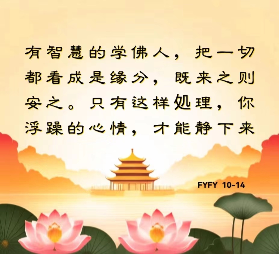 有智慧的学佛人,把一切都看成是缘分,既来之则安之。只有这样处理,你浮躁的心情,才能静下来。