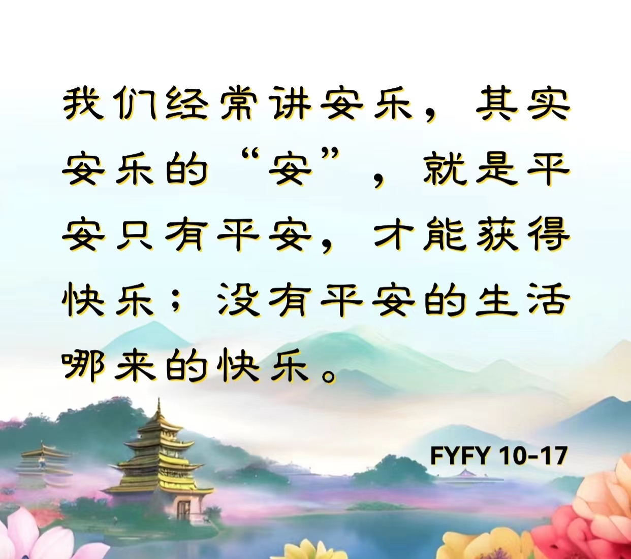 我们经常讲安乐,其实安乐的“安”,就是平安。只有平安,才能获得快乐;没有平安的生活,哪来的快乐。