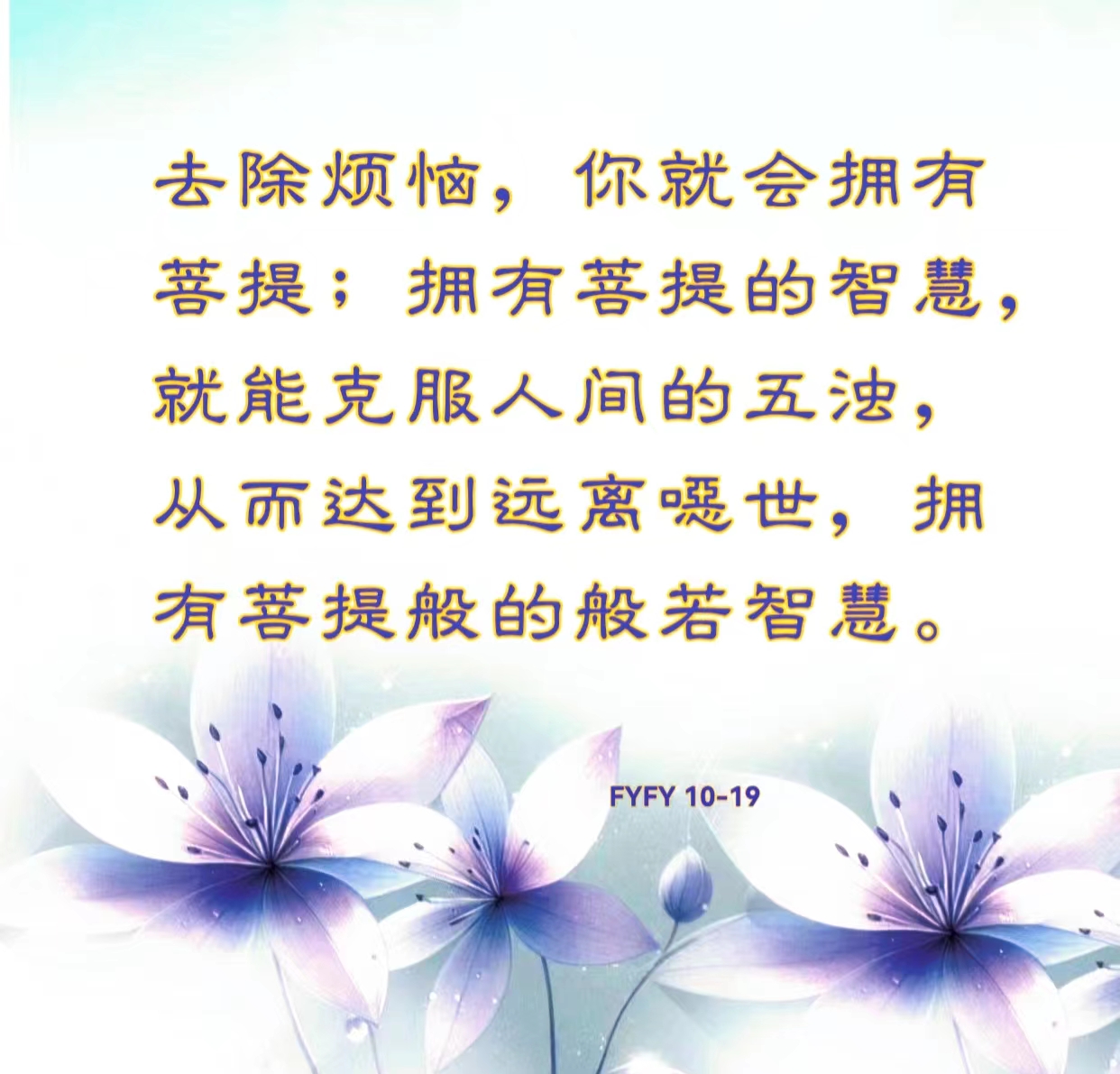 去除烦恼,你就会拥有菩提;拥有菩提的智慧,就能克服人间的五浊,从而达到远离恶世,拥有菩提般的般若智慧。
