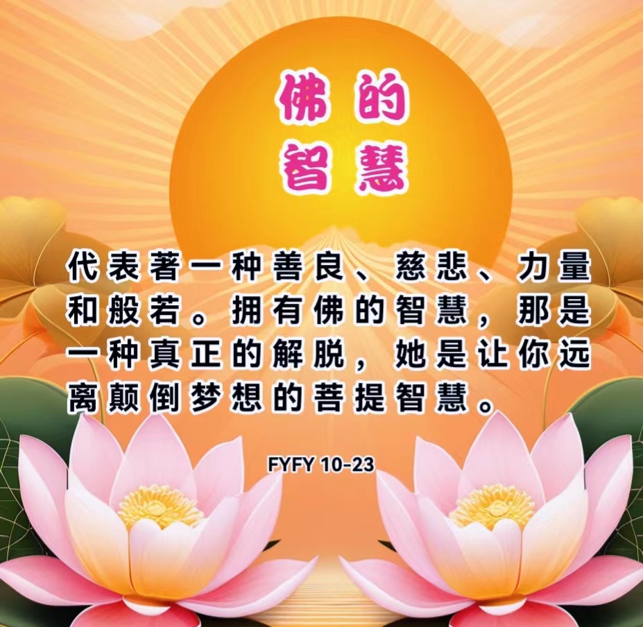 佛的智慧代表著一种善良、慈悲、力量和般若。拥有佛的智慧,那是一种真正的解脱,她是让你远离颠倒梦想的菩提智慧。