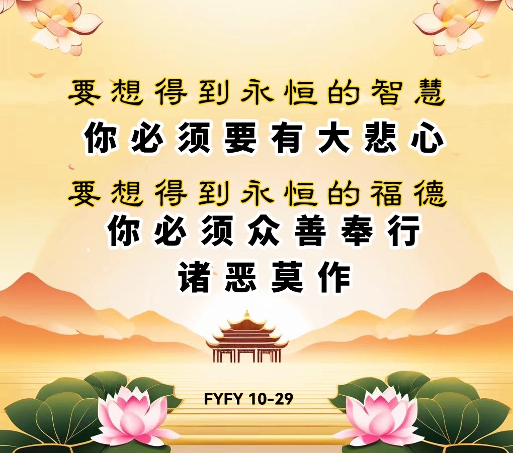 要想得到永恒的智慧,你必须要有大悲心;要想得到永恒的福德,你必须众善奉行,诸恶莫作。