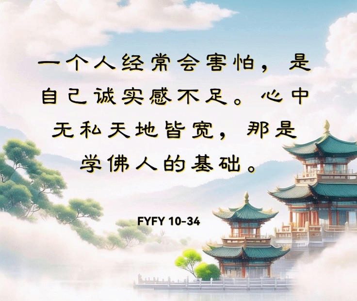 一个人经常会害怕,是自己诚实感不足。心中无私天地皆宽,那是学佛人的基础。