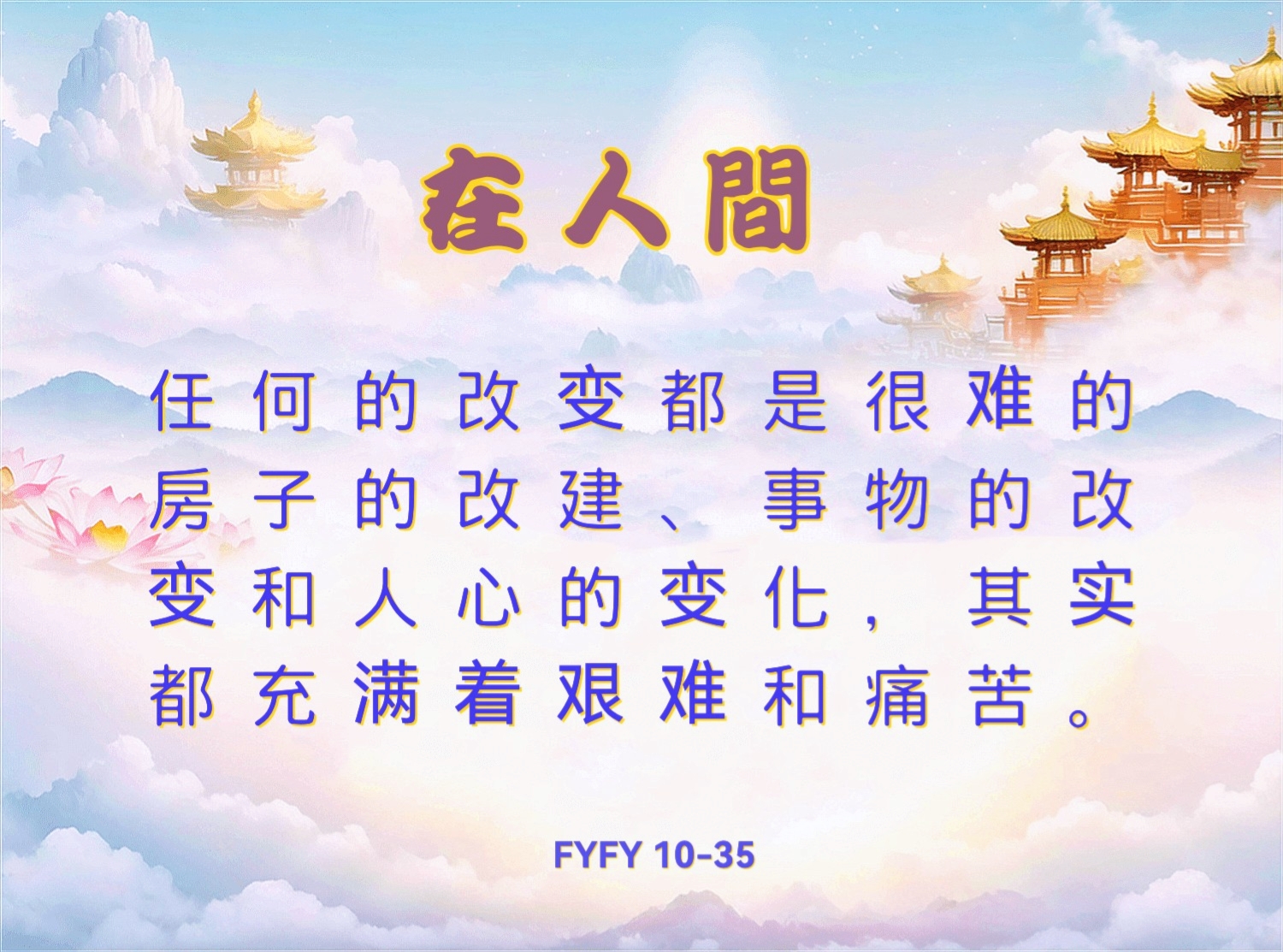 在人间,任何的改变都是很难的。房子的改建、事物的改变和人心的变化,其实都充满着艰难和痛苦。