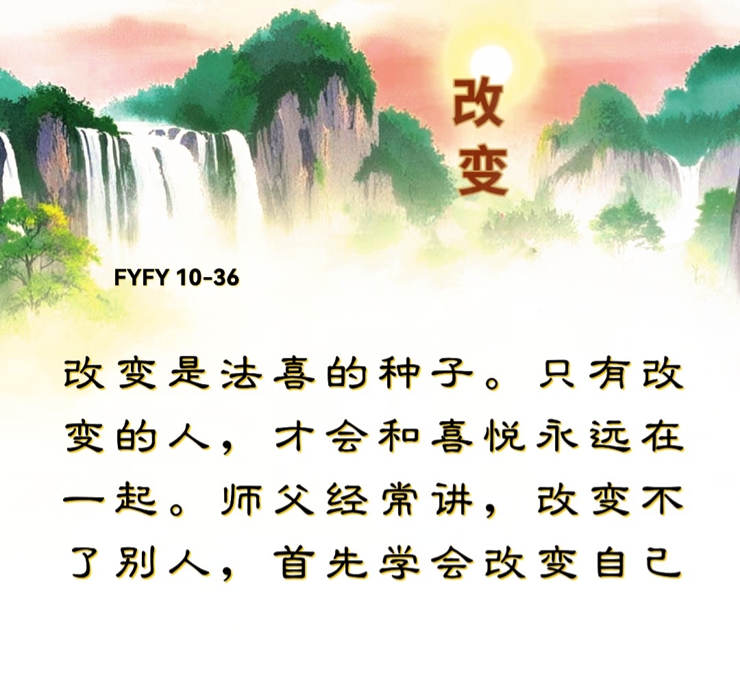 改变是法喜的种子。只有改变的人,才会和喜悦永远在一起。师父经常讲,改变不了别人,首先学会改变自己。