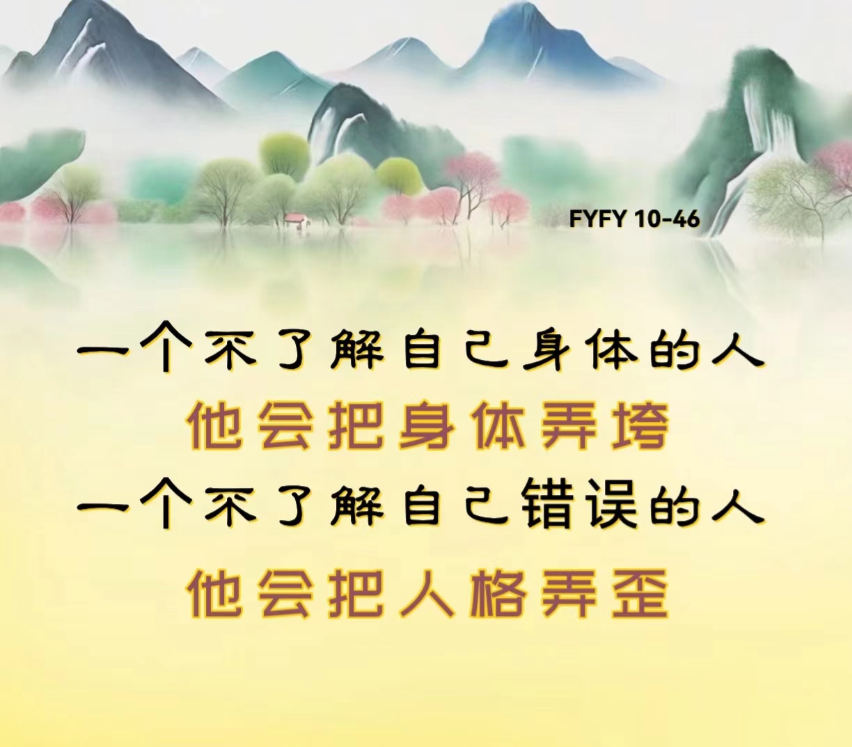 一个不了解自己身体的人,他会把身体弄垮;一个不了解自己错误的人,他会把人格弄歪。