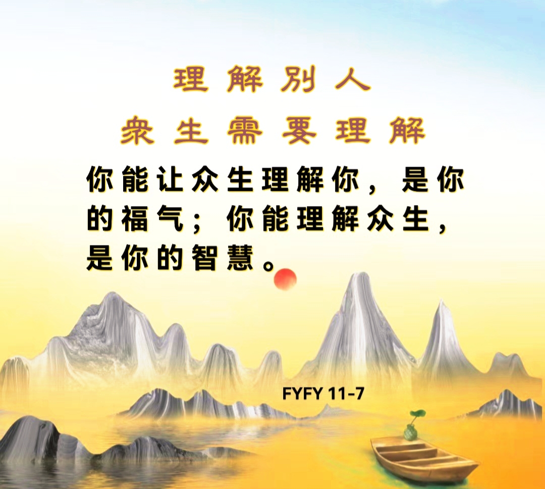 学会理解别人,众生需要理解。你能让众生理解你,是你的福气;你能理解众生,是你的智慧。
