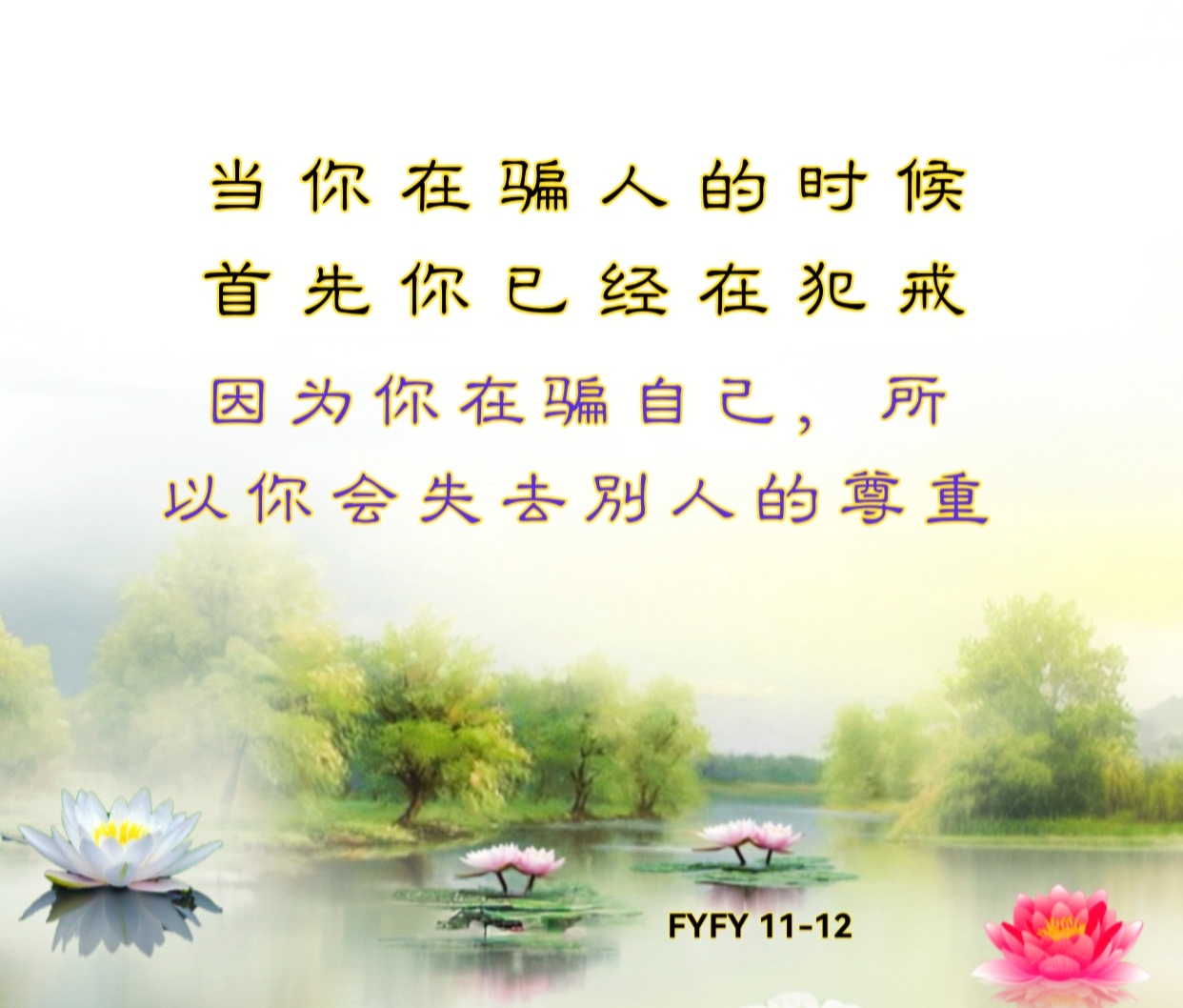当你在骗人的时候,首先你已经在犯戒;因为你在骗自己,所以你会失去别人的尊重。