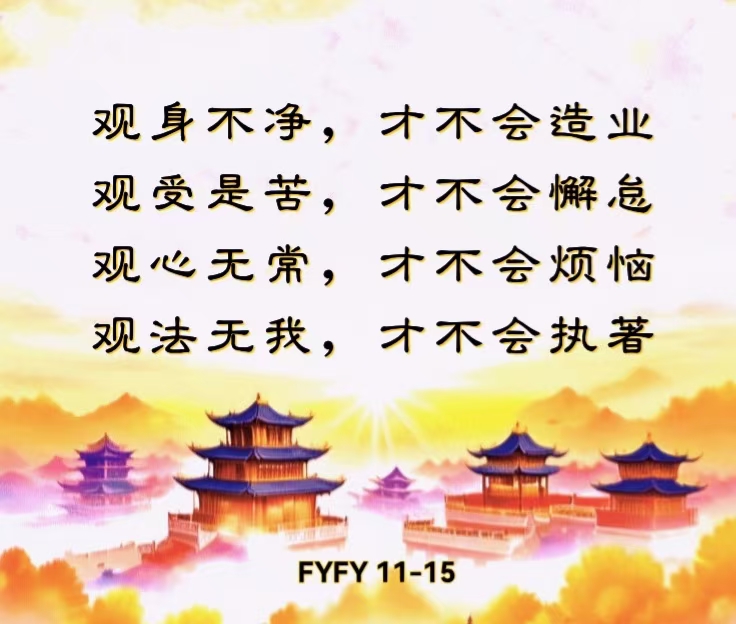 观身不净,才不会造业;观受是苦,才不会懈怠;观心无常,才不会烦恼;观法无我,才不会执著。