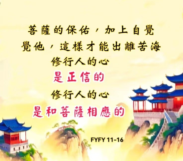 菩萨的保佑,加上自觉觉他,这样才能出离苦海。修行人的心,是正信的;修行人的心,是和菩萨相应的。