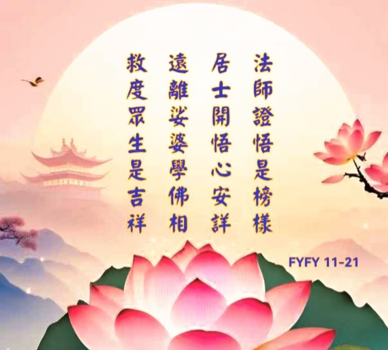 法師證悟是榜樣,居士開悟心安詳。遠離娑婆學佛相,救度眾生是吉祥
