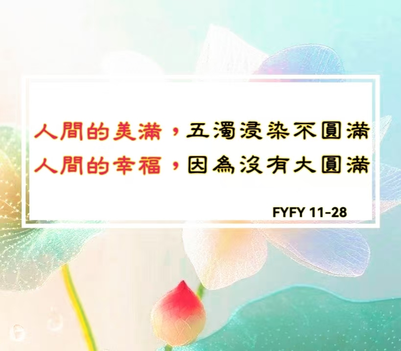 人間的美滿,五濁浸染不圓滿;人間的幸福,因為沒有大圆滿。