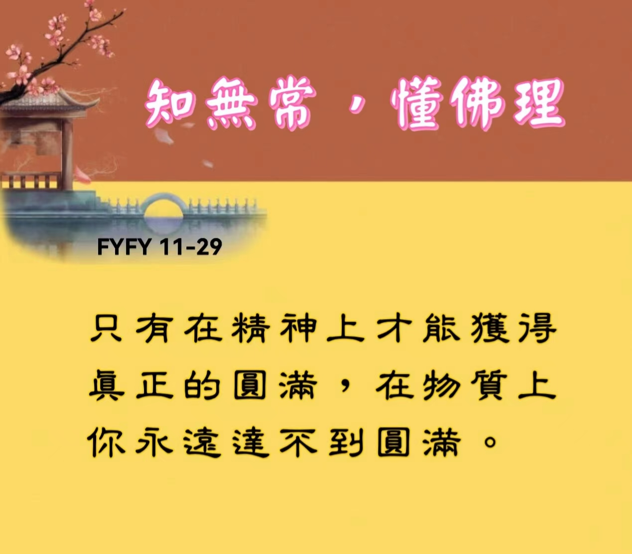 知無常,懂佛理。只有在精神上才能獲得真正的圓滿,在物質上你永遠達不到圓滿。