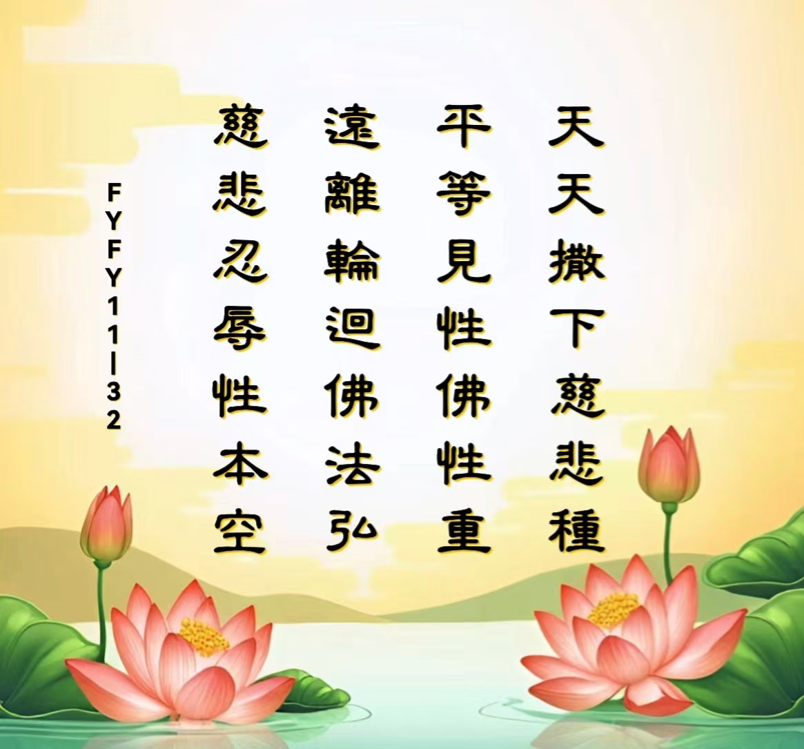 天天撒下慈悲種,平等見性佛性重。遠離輪迴佛法弘,慈悲忍辱性本空。