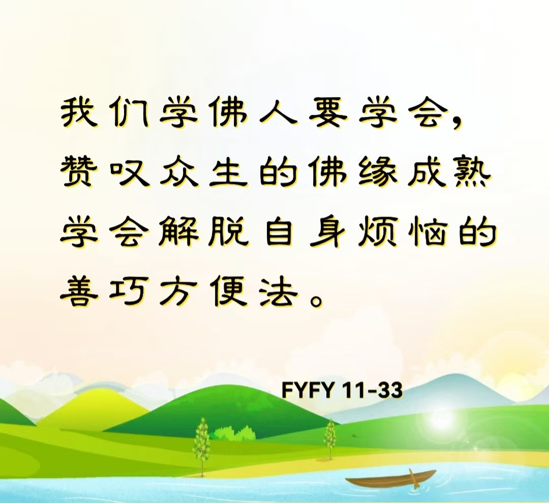 我們學佛人要學會讚歎眾生的佛緣成熟學會解脫自身煩惱的善巧方便法。