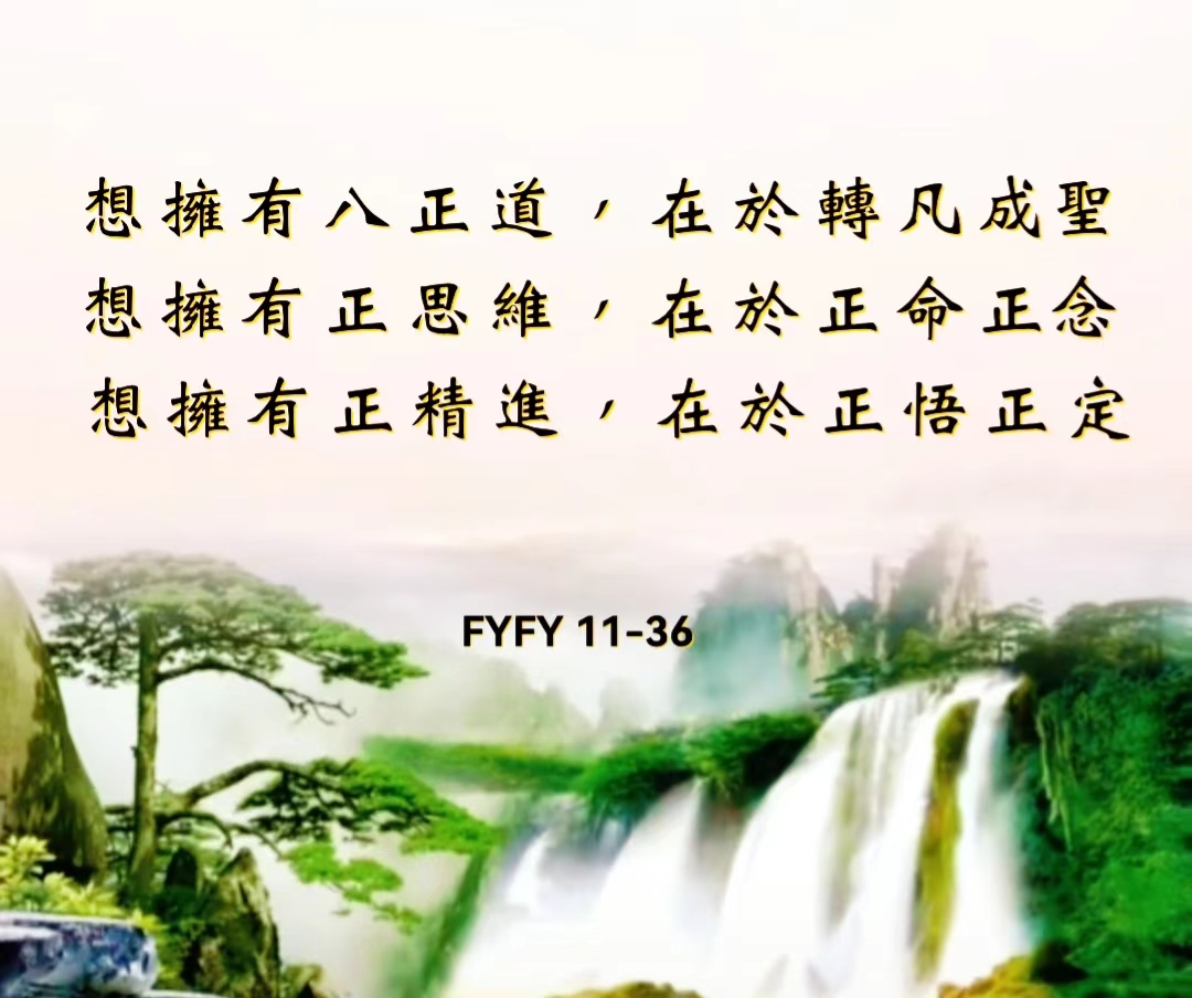 想擁有八正道,在於轉凡成聖。想擁有正思維,在於正命念,想擁有正精進,在於正悟正定。