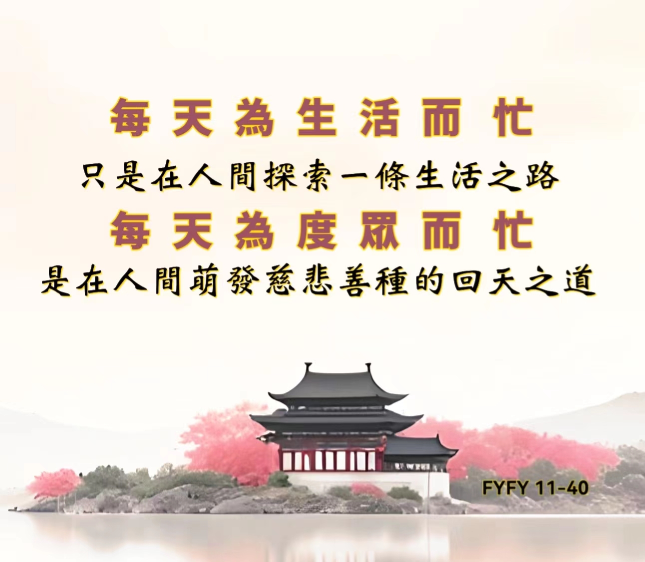 每天為生活而忙,只是在人間探索一條生活之路;每天為度眾而忙,是在人間萌發慈悲善種的回天之道。