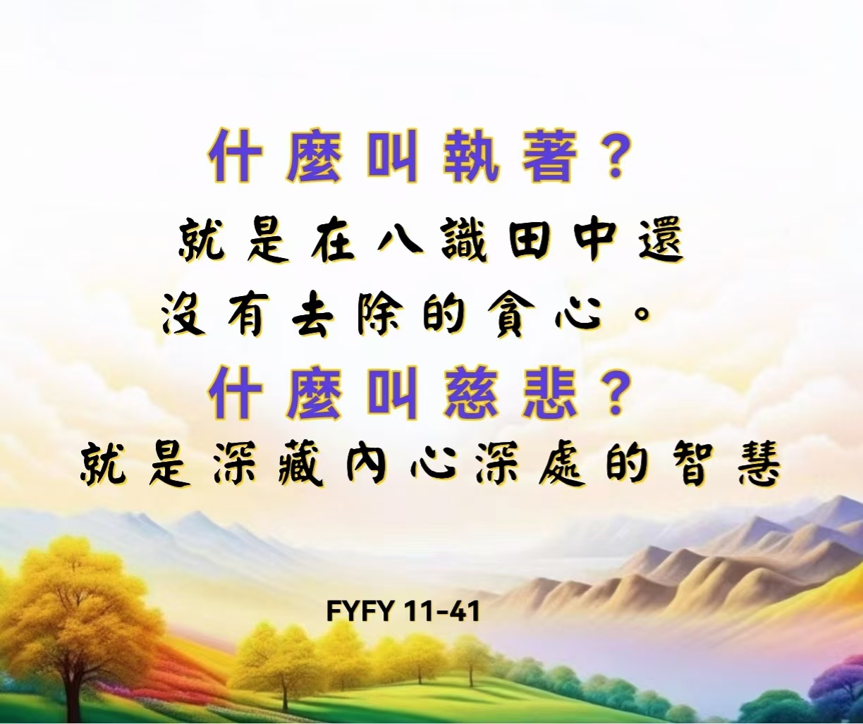 什麼叫執著?就是在八識田中還沒有去除的貪心。什麼叫慈悲?就是深藏內心深處的智慧。