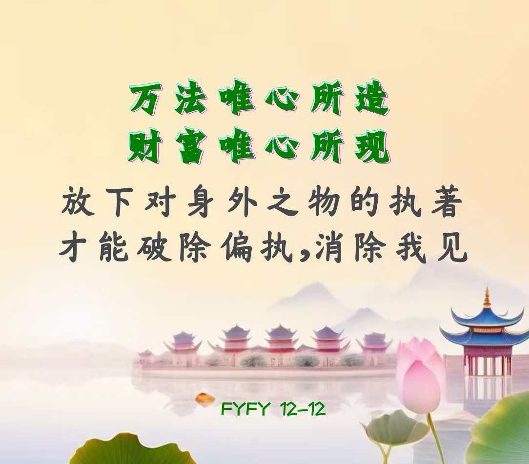 万法唯心所造,财富唯心所现。放下对身外之物的执著,才能破除偏执,消除我见