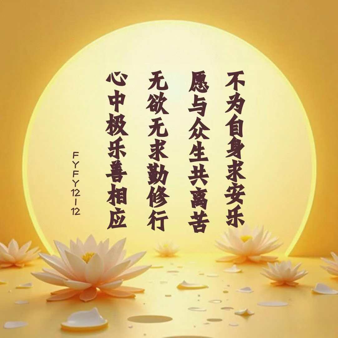 不为自身求安乐,愿与众生共离苦。无欲无求勤修行,心中极乐善相应