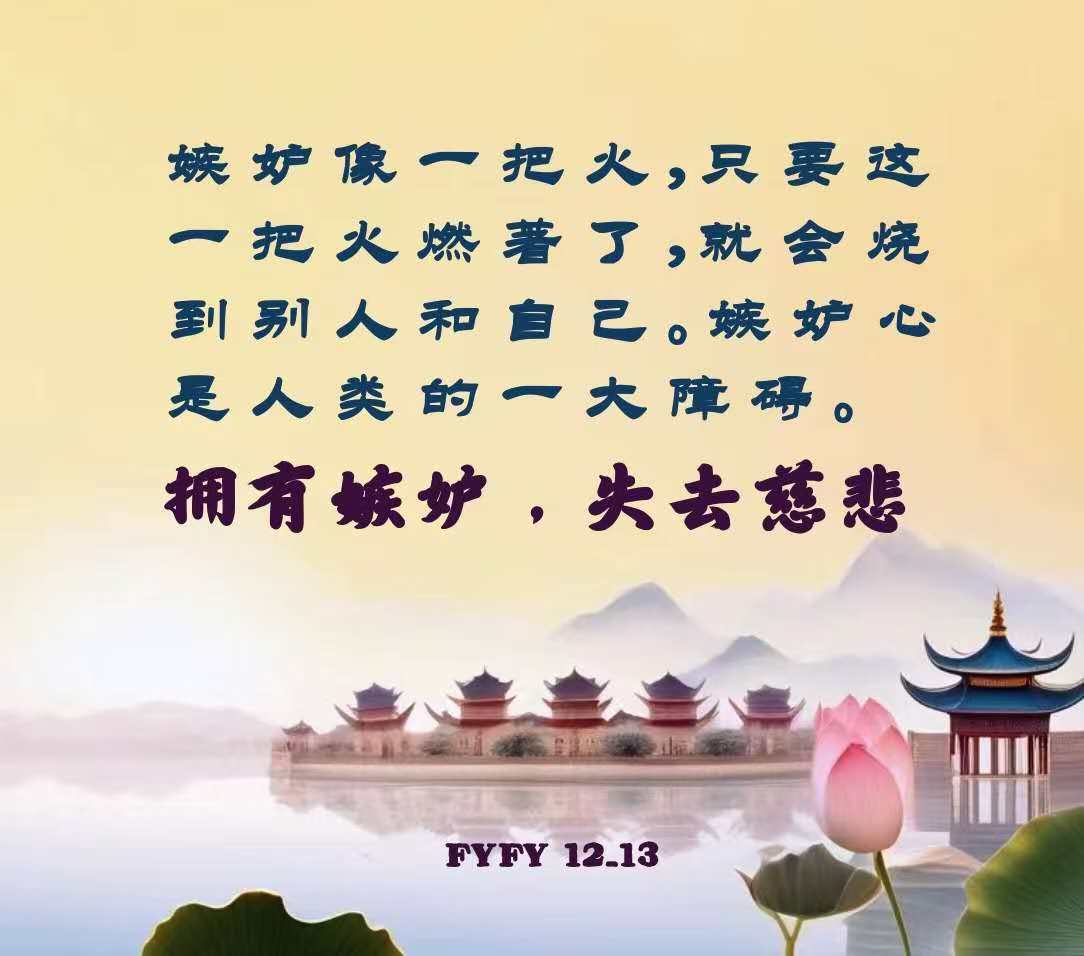 嫉妒像一把火,只要这一把火燃著了,就会烧到别人和自己。嫉妒心是人类的一大障碍。拥有嫉妒,失去慈悲。