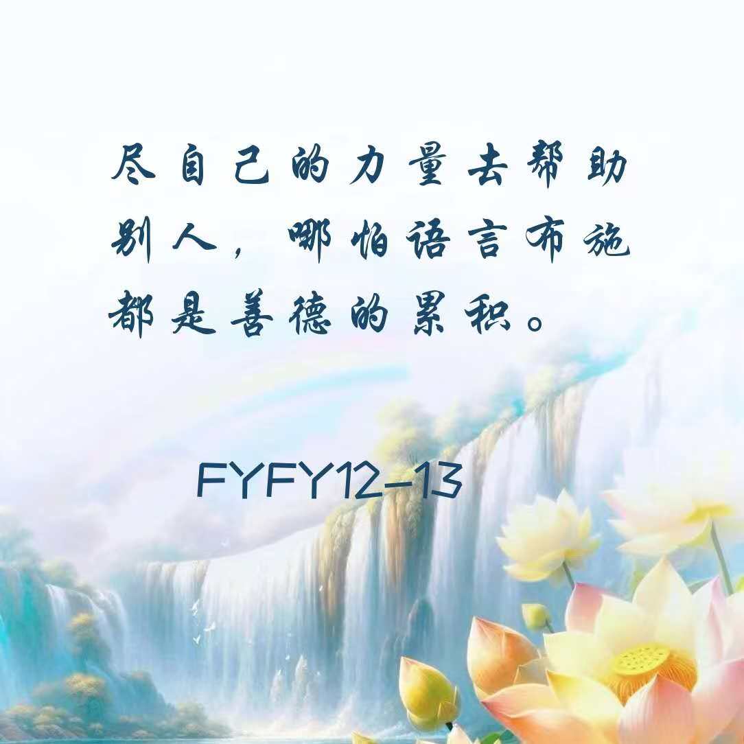 尽自己的力量去帮助别人,哪怕语言布施,都是善德的累积。