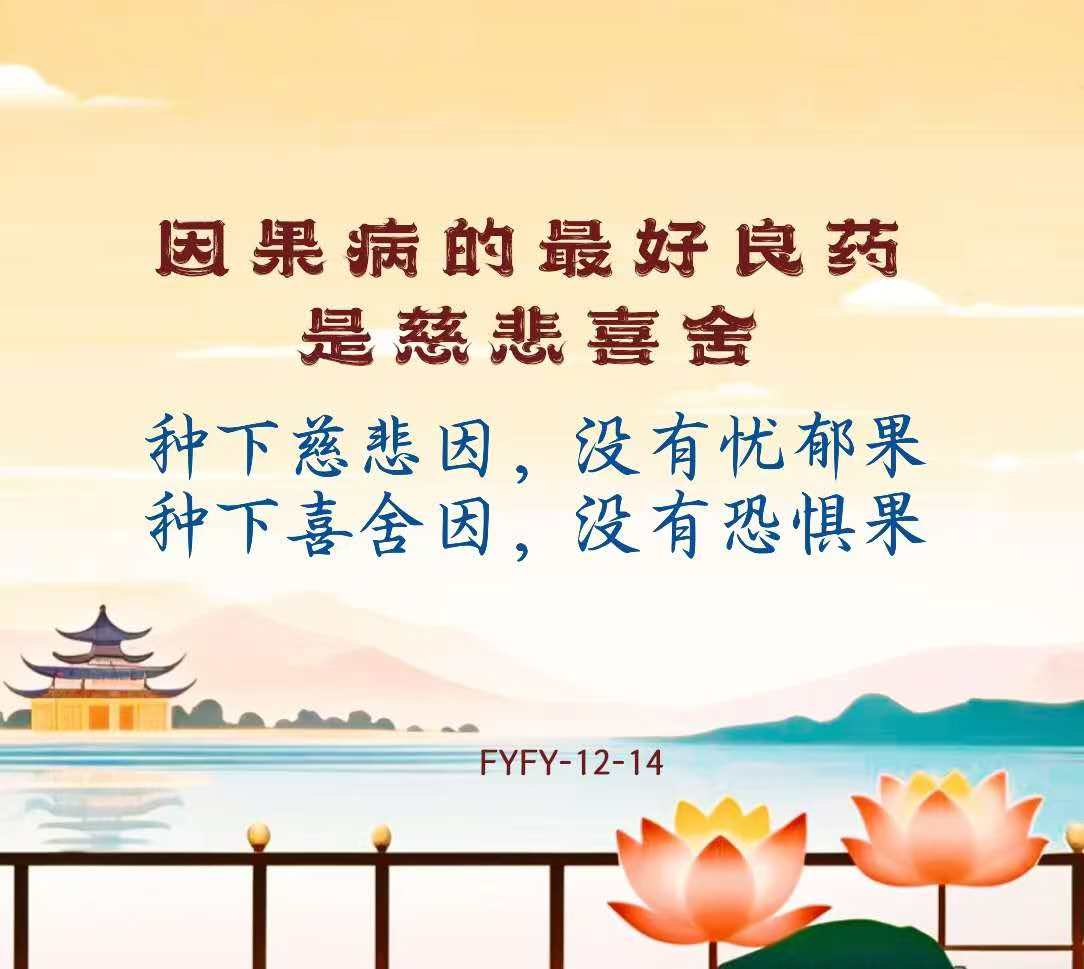 因果病的最好良药,是慈悲喜舍。种下慈悲因,没有忧郁果;种下喜舍因,没有恐惧果。