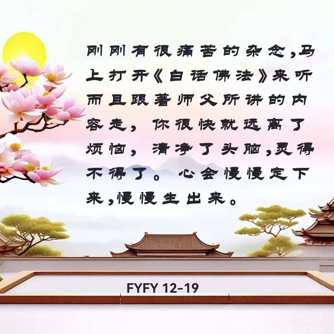 刚刚有很痛苦的杂念,马上打开《白话佛法》来听,而且跟著师父所讲的内容走,你很快就远离了烦恼,清净了头脑,灵得不得了。心会慢慢定下来,智慧慢慢生出来。