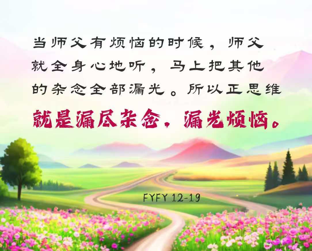 当师父有烦恼的时候,师父就全身心地听,马上把其他的杂念全部漏光。所以正思维,就是漏尽杂念,漏光烦恼。
